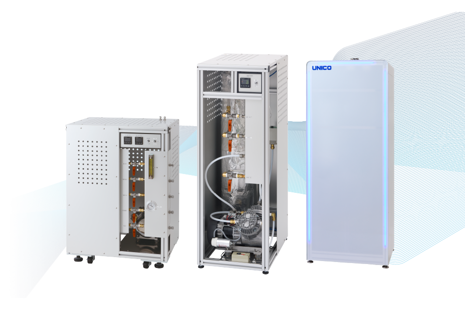 露点-80℃のウルトラ・ドライ(ppb実現)モデルや高性能の脱水分・脱酸素機能を装備したコンパクトローコストの装置もありますので、用途やシーンに合わせて選択が可能です。