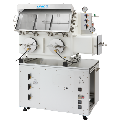 最も大切なのは、高レベルで作業雰囲気を維持すること。ガス循環生成装置は、雰囲気ガスを常時循環させながら水分・酸素等を吸着除去するため、雰囲気レベルの低下を回避することが可能です。UNICOでは、お客様のご要望や環境に応じて「ポンプ空冷式」「ブロアー水冷式」をご選択いただくことが可能です。