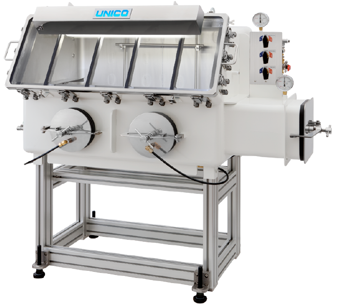 試料・サンプルの搬入時にパスボックスを全自動でガス置換をします。吸湿性の強い試料・ペーパーなどは、しっかりと脱水・脱ガスをしなければメインボックスの良好な雰囲気を悪化させてしまいます。