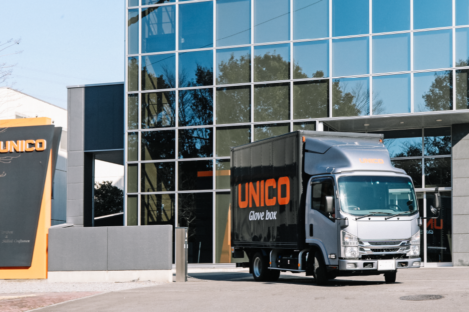 この最終検査では、今までの各工程での検査に加えさらに完成品としての UNICO 独自の厳しい基準をダブルチェックによりクリアしたグローブボックスには、照明カバーに光る UNICO エンブレムが取り付けられ、納品の時を待つことになります。