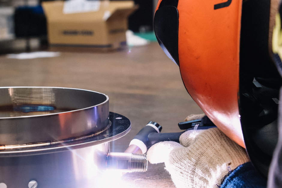 厳密なリーク検査を合格したパスボックスはメインボックスと溶接連結され“一体“となりグローブボックスの原形として姿を現します。造る者の心が込められたグローブボックスは、様々な細部の部品からも丁寧に仕上げられていることが確認できますが、特にこのメインボックスとパスボックスの様なハッキリと見える接合部分には職人魂を掛けて”魅せる”溶接加工をしています。